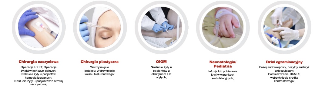 Skanery żył znajdują zastosowanie w pediatrii, radiologii, onkologii, geriatrii, chirurgii, medycynie estetycznej, chirurgii naczyniowej, a także w laboratoriach, na SOR-ach czy podczas lekarskich i pielęgniarskich wizyt domowych. Iluminatory naczyń krwionośnych są również niezwykle pomocne w punktach pobrań krwi, ambulatoryjnych salach transfuzji, ośrodkach krwiodawstwa czy też domach opieki. Z uwagi na to, że skaner do wykrywania żył, jako urządzenie bezkontaktowe, nie ma żadnej styczności ze skórą osoby badanej, nie wymaga sterylizacji po każdym jego użyciu.